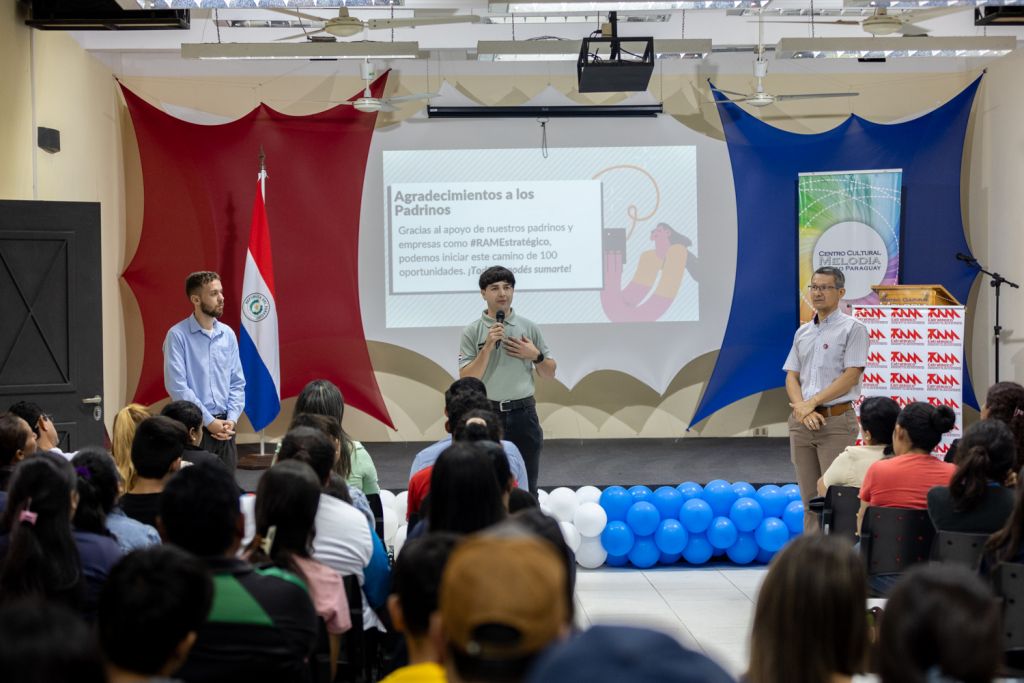 Durante el evento, el Director del Centro Cultural Melodía, Sr. Félix Fariña, presentó los objetivos y alcances del programa. Seguidamente, el Sr. Cañete dirigió unas palabras motivadoras a los becados, y la Mg. Irala reafirmó el compromiso del sector educativo con esta iniciativa transformadora.