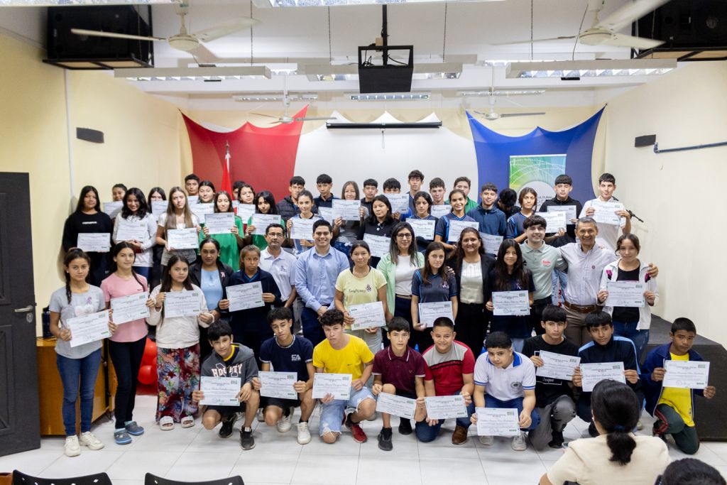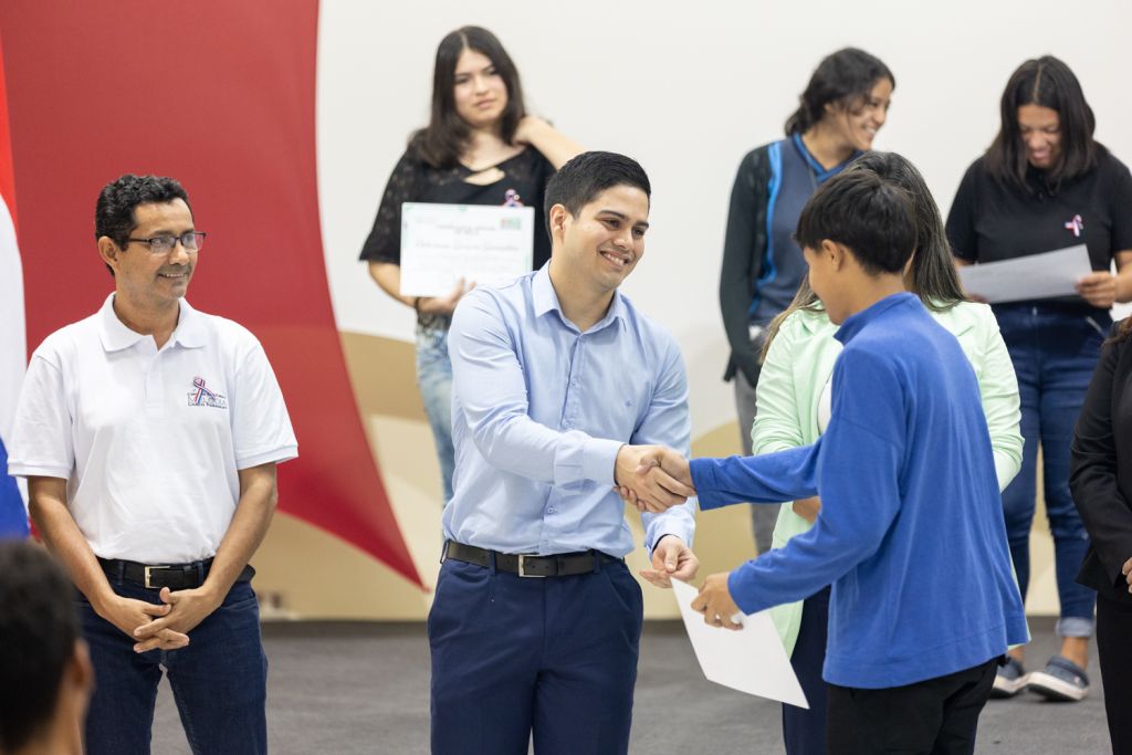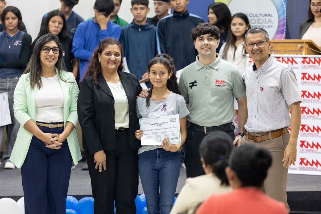 La ceremonia contó con la presencia de padres, tutores, profesores y directores de las instituciones educativas a las que pertenecen los jóvenes beneficiarios. Asimismo, participaron autoridades del Ministerio de Educación y Ciencias, representadas por la Directora Departamental de Educación, Mg. Lilian Irala, y destacados aliados del programa como el señor Ramón Cañete, propietario de la empresa RAM Estratégico, quien por segundo año consecutivo acompaña como padrino de las becas.