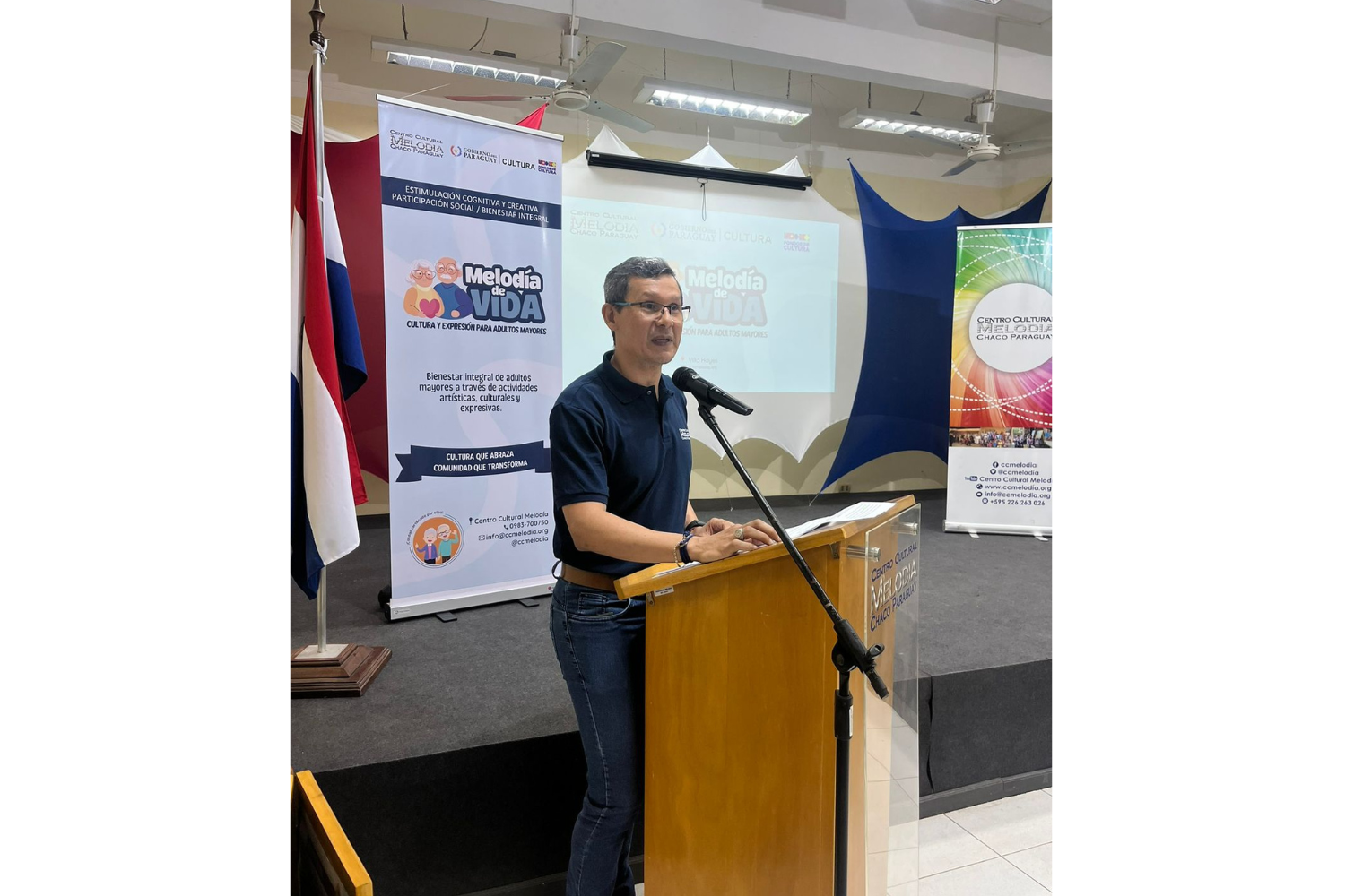 El acto reunió a autoridades nacionales y locales, entre ellas Estela Franchestelli, Directora General de Diversidad, Derechos y Procesos Culturales, quien brindó unas palabras en representación de la Secretaría Nacional de Cultura; Ana Benítez, Coordinadora de Fondos de Cultura; y la Lic. Alba Jazmín Irala de Maldonado, Directora del IPS Regional Villa Hayes, que destacó la importancia del trabajo conjunto en beneficio de los adultos mayores.